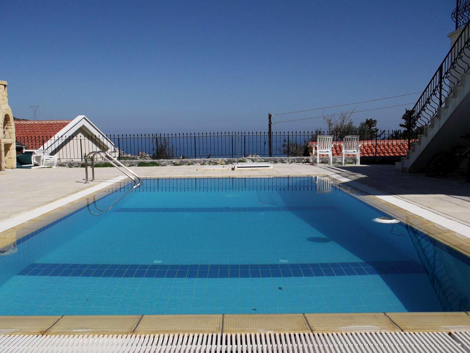 Outside Wrought iron entrance gates leading to block paved driveway, roof terrace with sea and mountain views, 8m x 4m overflow swimming pool, terrace with BBQ area and outside shower. The garden has mature shrubbery and is enclosed by stone boundary walls.