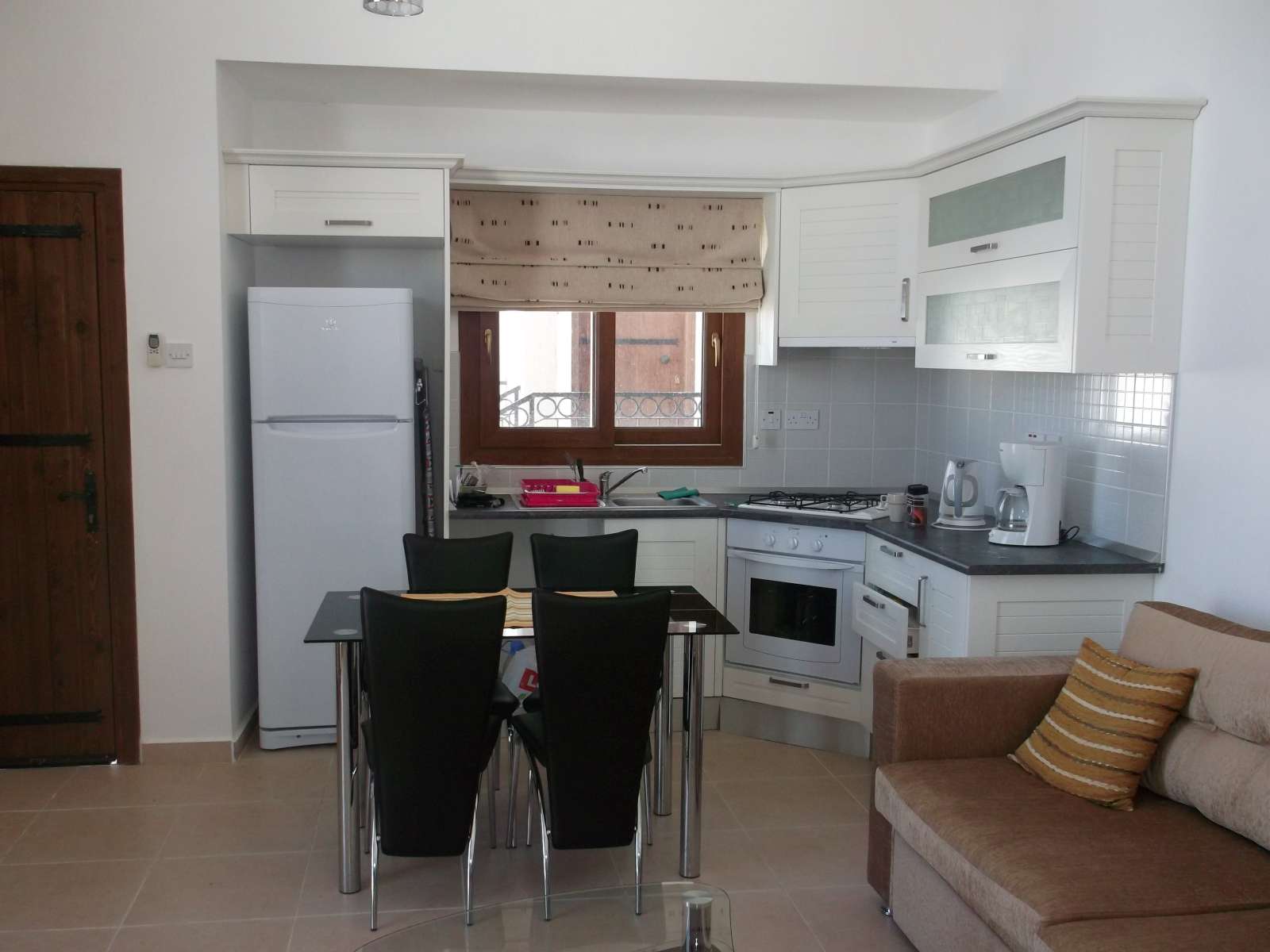 Open Plan Lounge/Diner/Kitchen Dual aspect with double patio doors leading to side balcony, air conditioning unit, curtain poles with nets and curtains, sofa, coffee table, flat screen TV, dining table with 4 chairs.Kitchen - Base and eye level fitted units, ceramic tiled splash back, stainless steel sink with mixer tap, fridge freezer, electric oven, gas hob and tiled floor with underfloor gas heating.